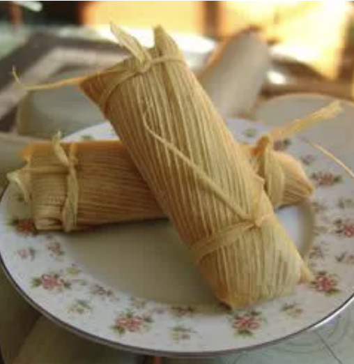 Step 7:Place tamales in a steamer basket. Steam over boiling water for approximately one hour, until masa is firm and holds its shape, adding more water if needed so the steamer does not boil dry. Serve immediately, allowing each person to unwrap their own tamales.